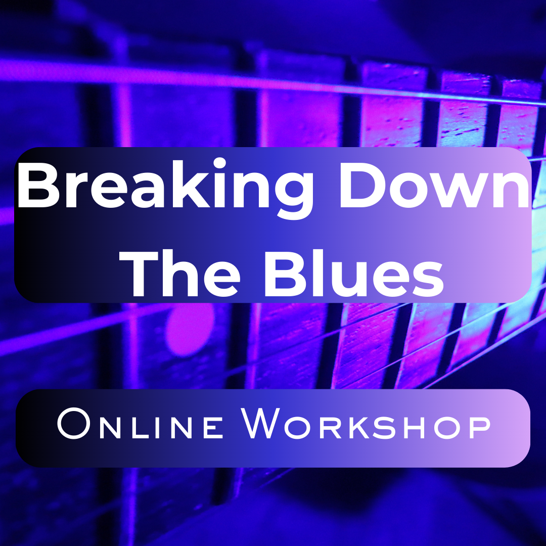 Throughout the workshop, we’ll walk through my Breaking Down The Blues online course. This is a highly addictive style. Once you start to get it, your guitar will sound like an ensemble, making it hard to put down. The course is friendly for both acoustic and electric guitar.